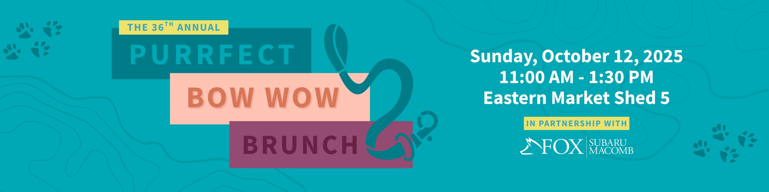 The Purrfect Bow Wow Brunch is an annual celebration of the daily impact made by Michigan Humane across our region, state, and country. Attended by more than 650 supporters, this signature fundraising event is an opportunity to recognize the individuals, corporations and foundations in and outside of the event space who make our work possible through their generosity, kindness, and dedication to the mission of Michigan Humane.